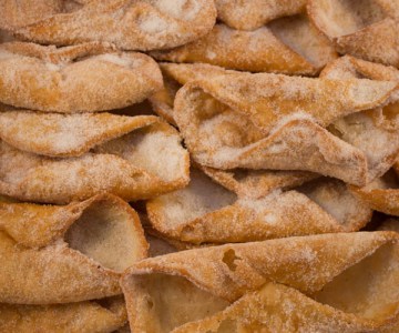 Masa frita con forma de pequeños lazos crujientes, espolvoreados con azúcar.